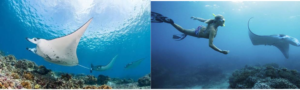 - Continue the trip to Pink Beach and Manta Point for snorkeling.